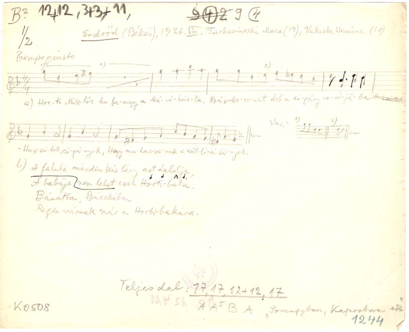 Informant: Farkasinszki Maca (19), Valuska Hermina (18)