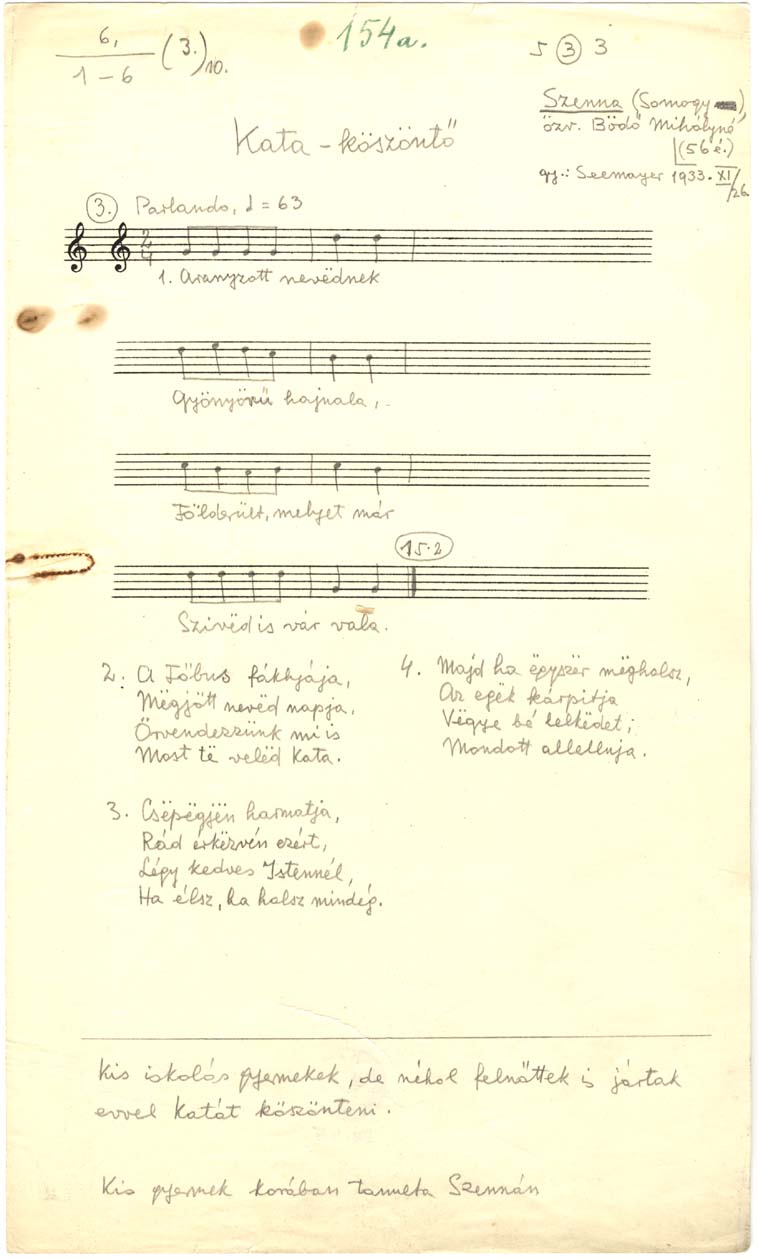 Informant: Bödő Mihályné Zóka Katalin, özv. (56)