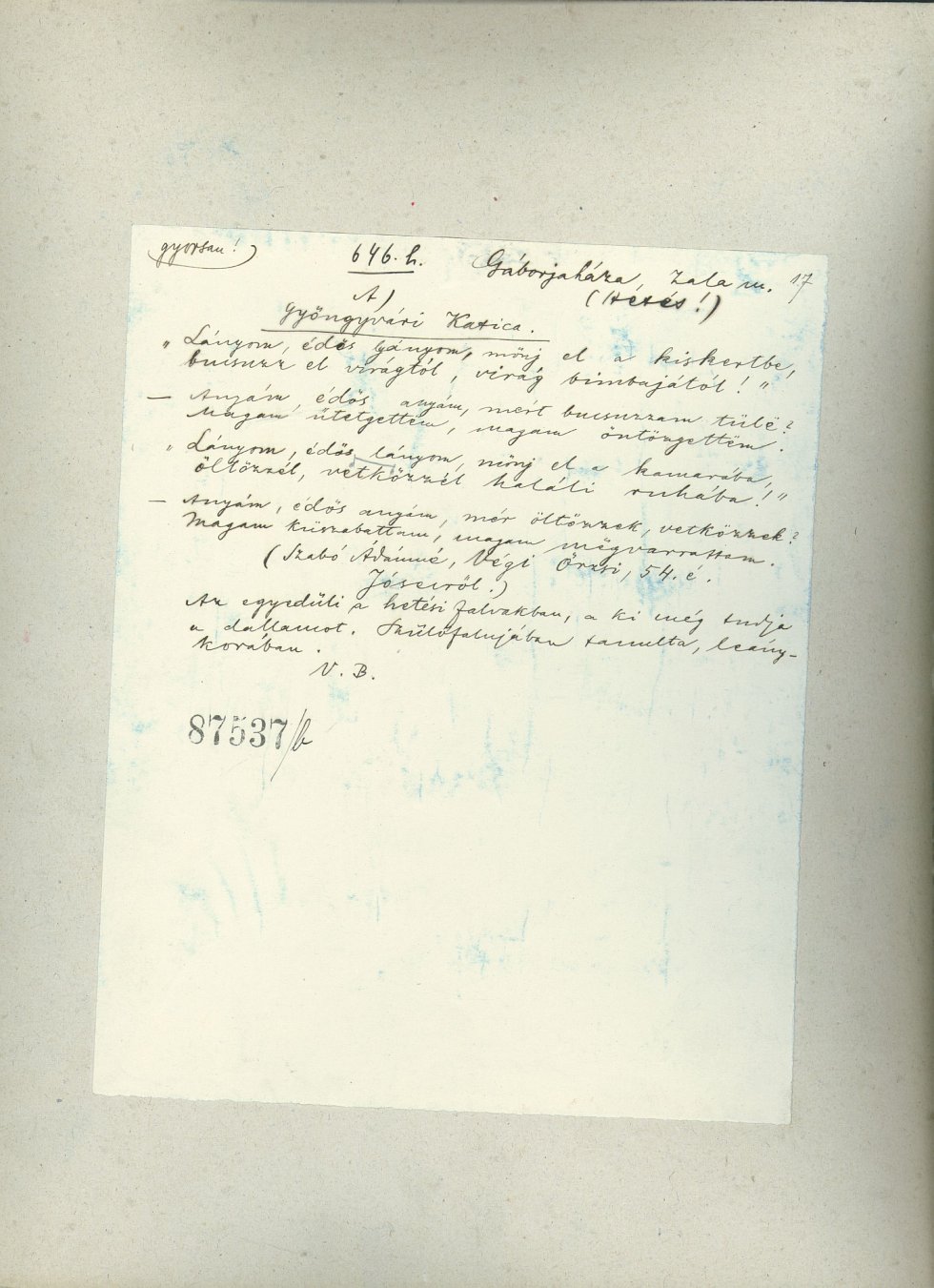 Informant: Lakó Ádámné Végi Örzsi (55)