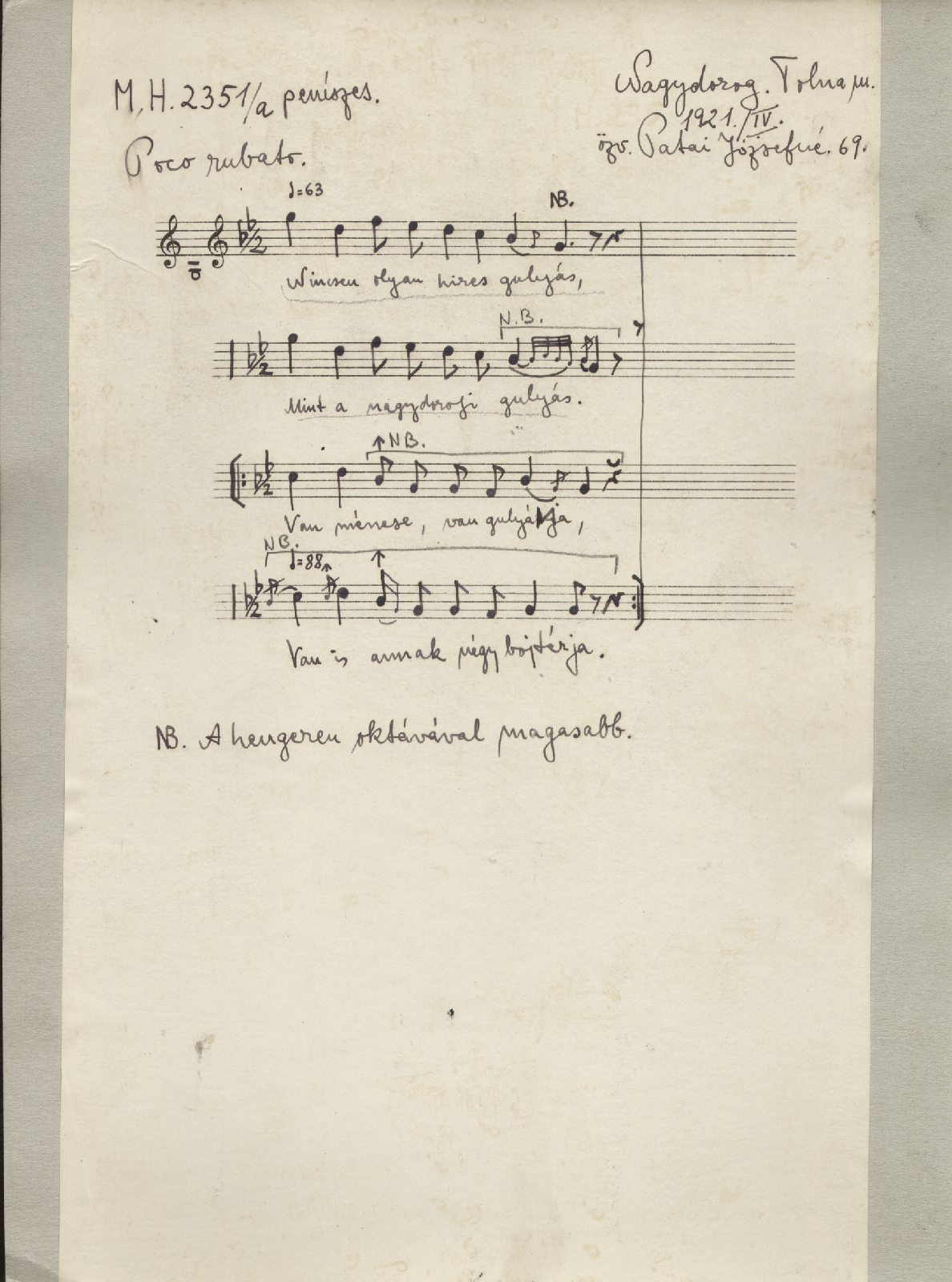 Informant: Pápai Józsefné, özv. (69)