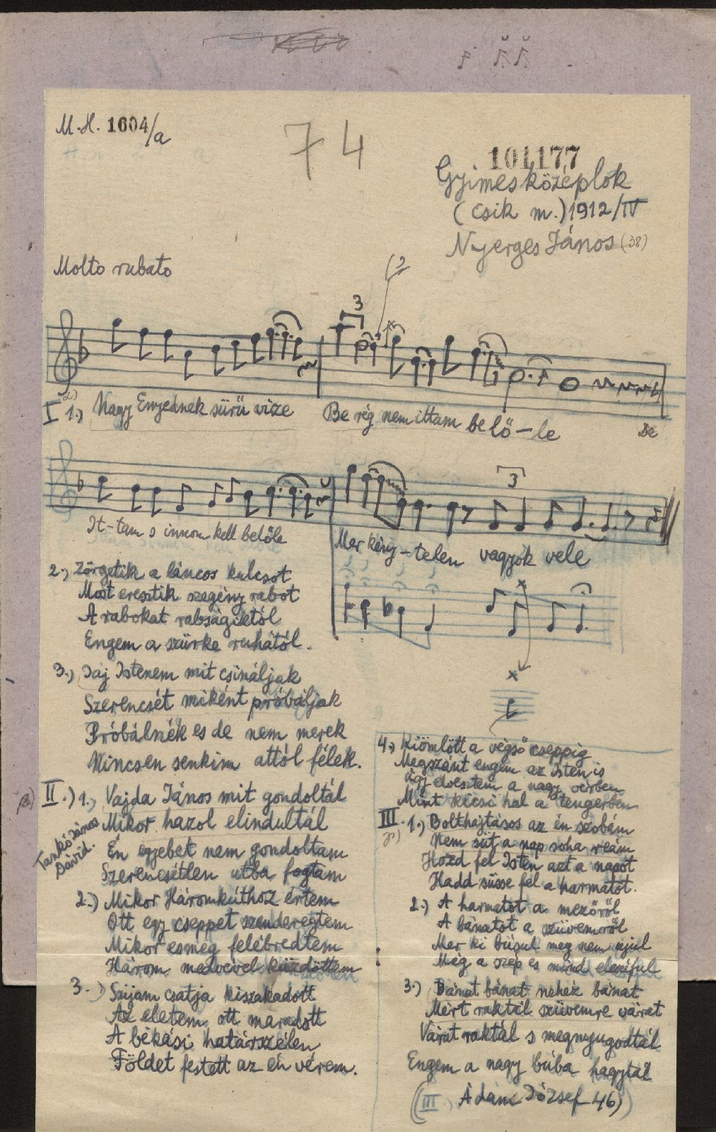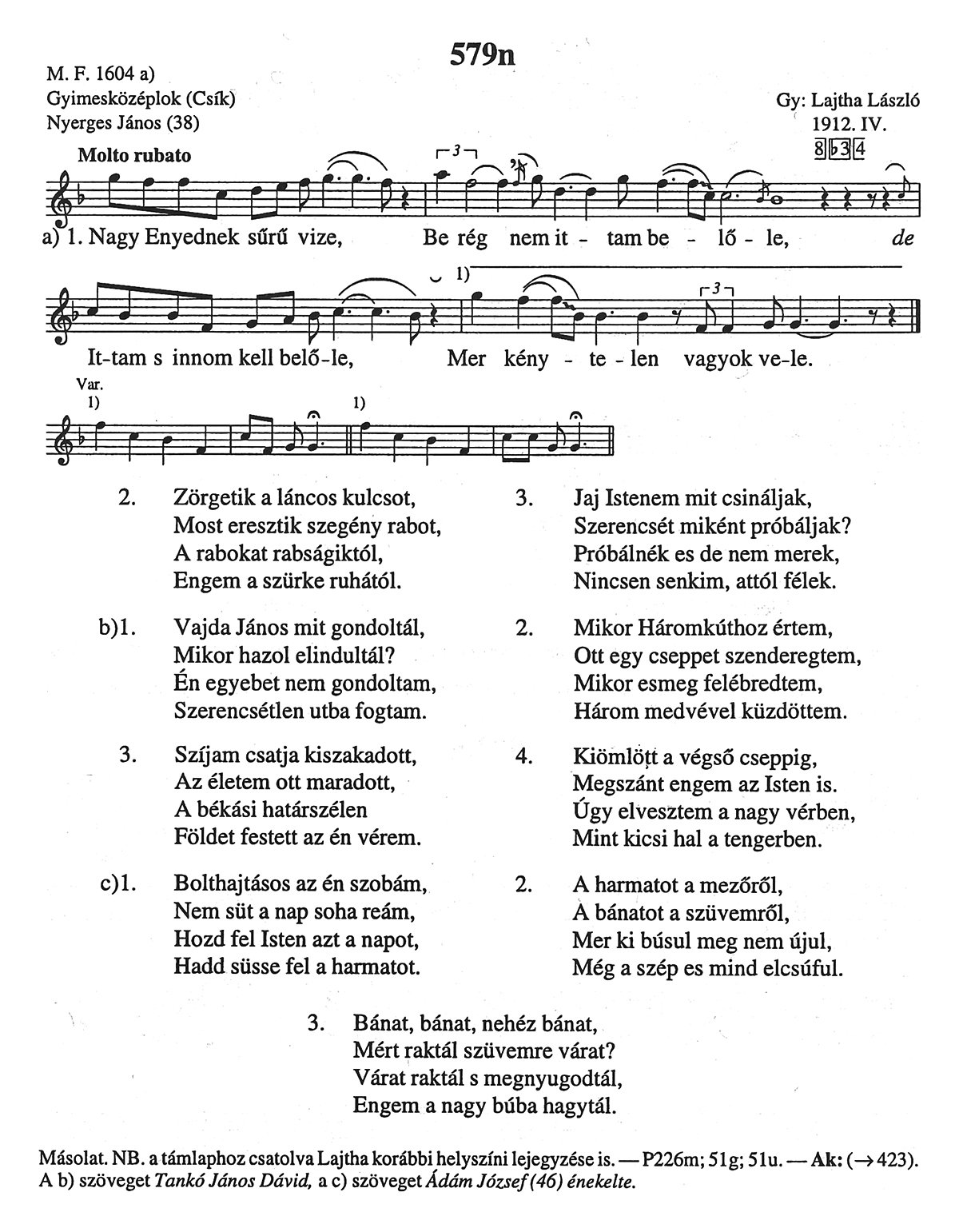Informant: Nyerges János (38), Tankó János Dávid, Ádám József (46)