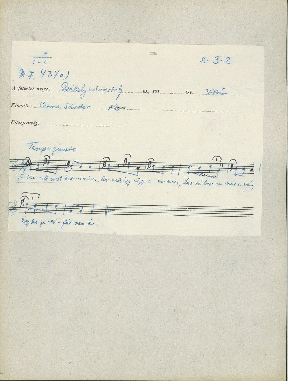 Informant: Csoma Sándor (72)