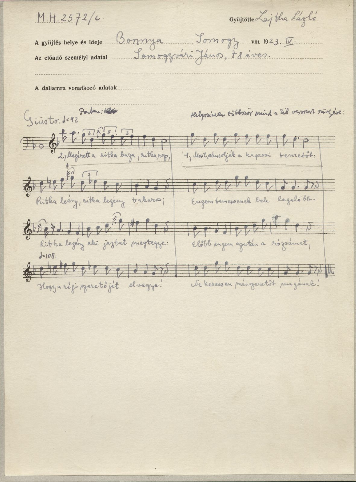 Informant: Somogyvári János (78)