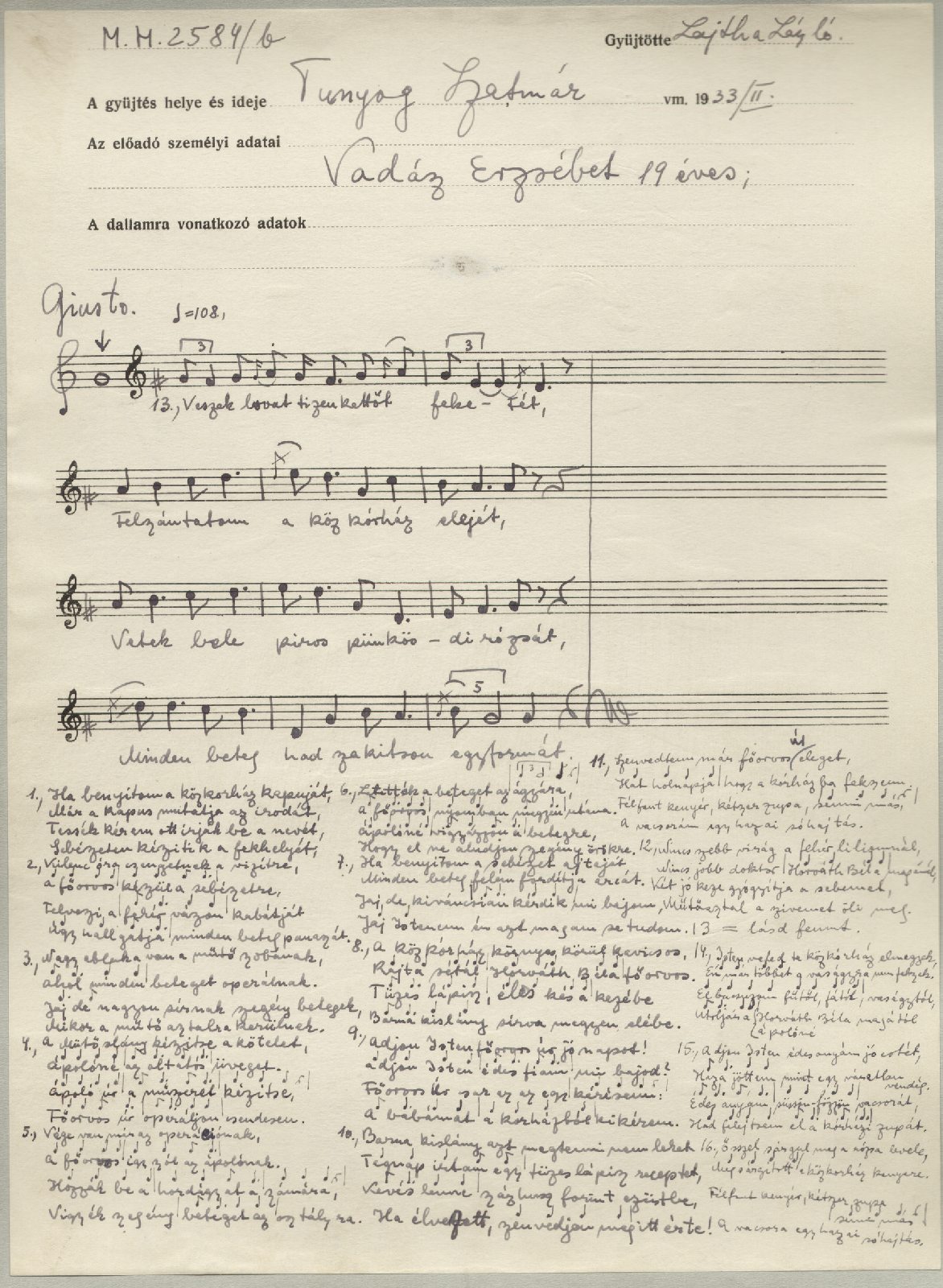 Informant: Vadász Erzsi (19)