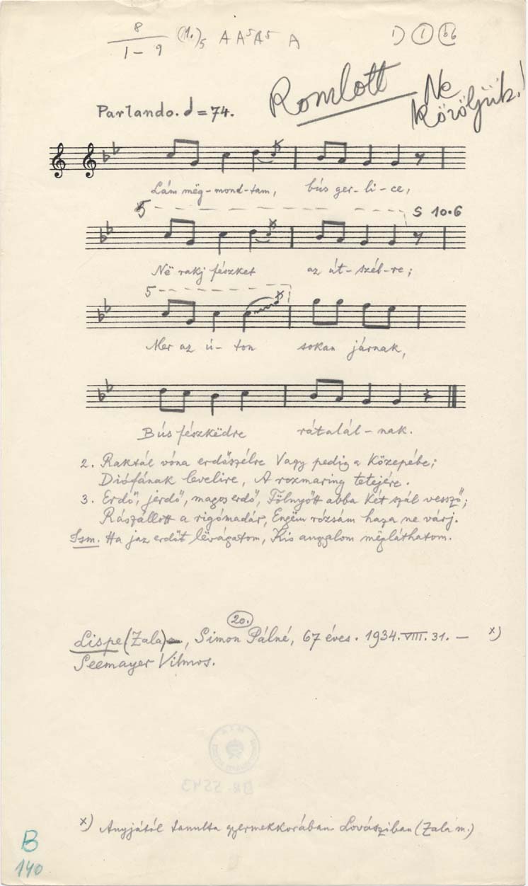 Informant: Simon Pálné Kondákor Ágnes (67)