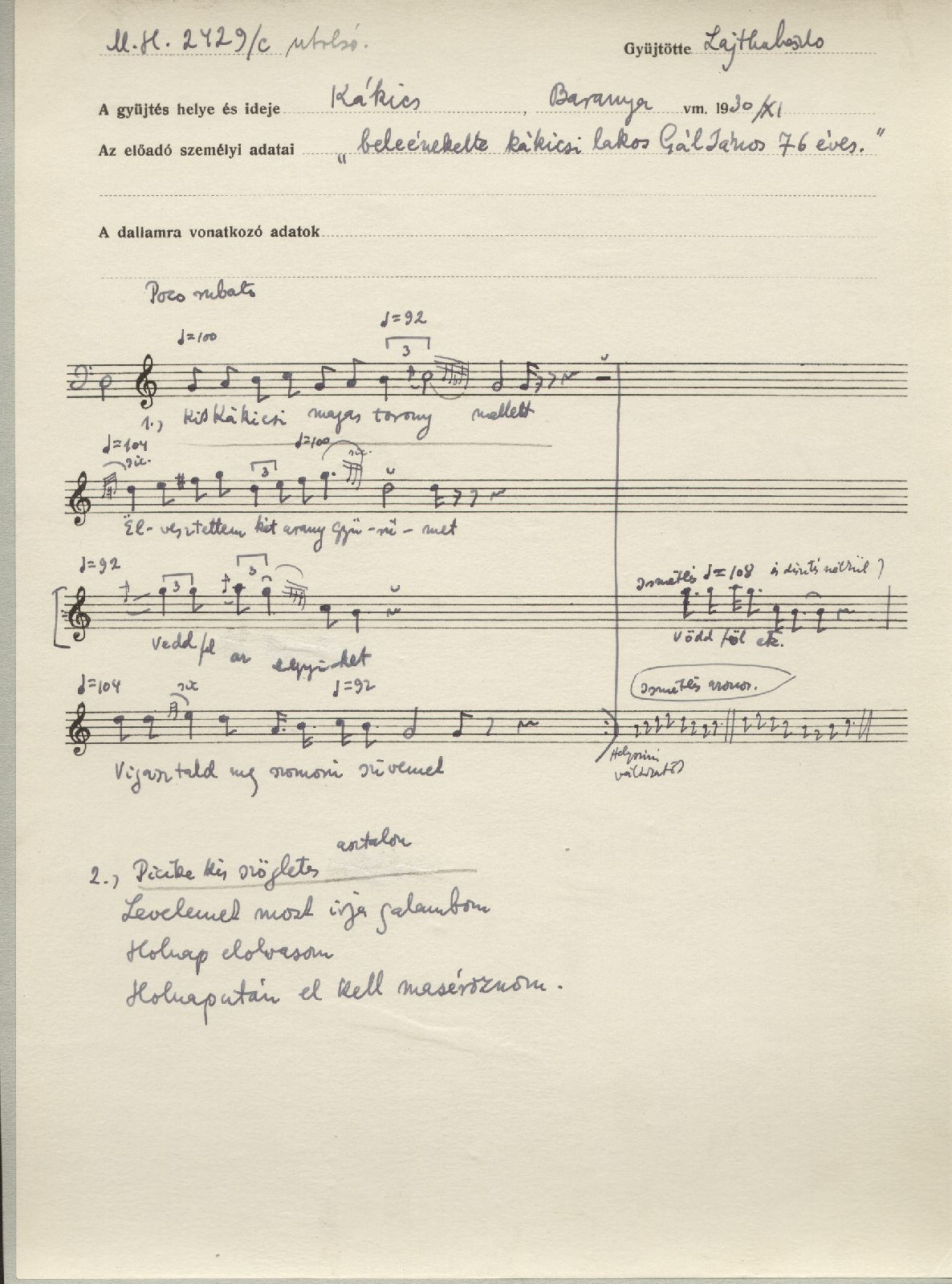 Informant: Gál János (76)