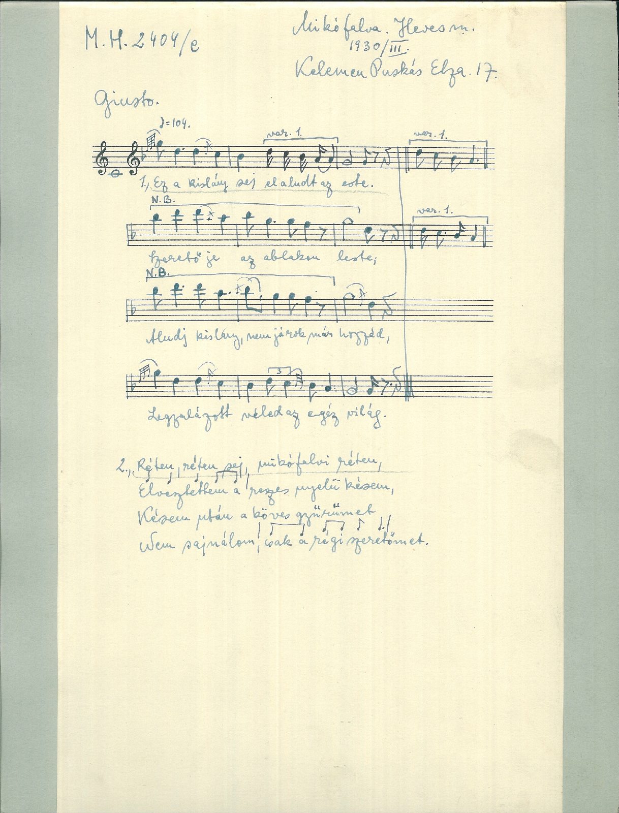 Informant: Kelemen Puskás Elza (17)
