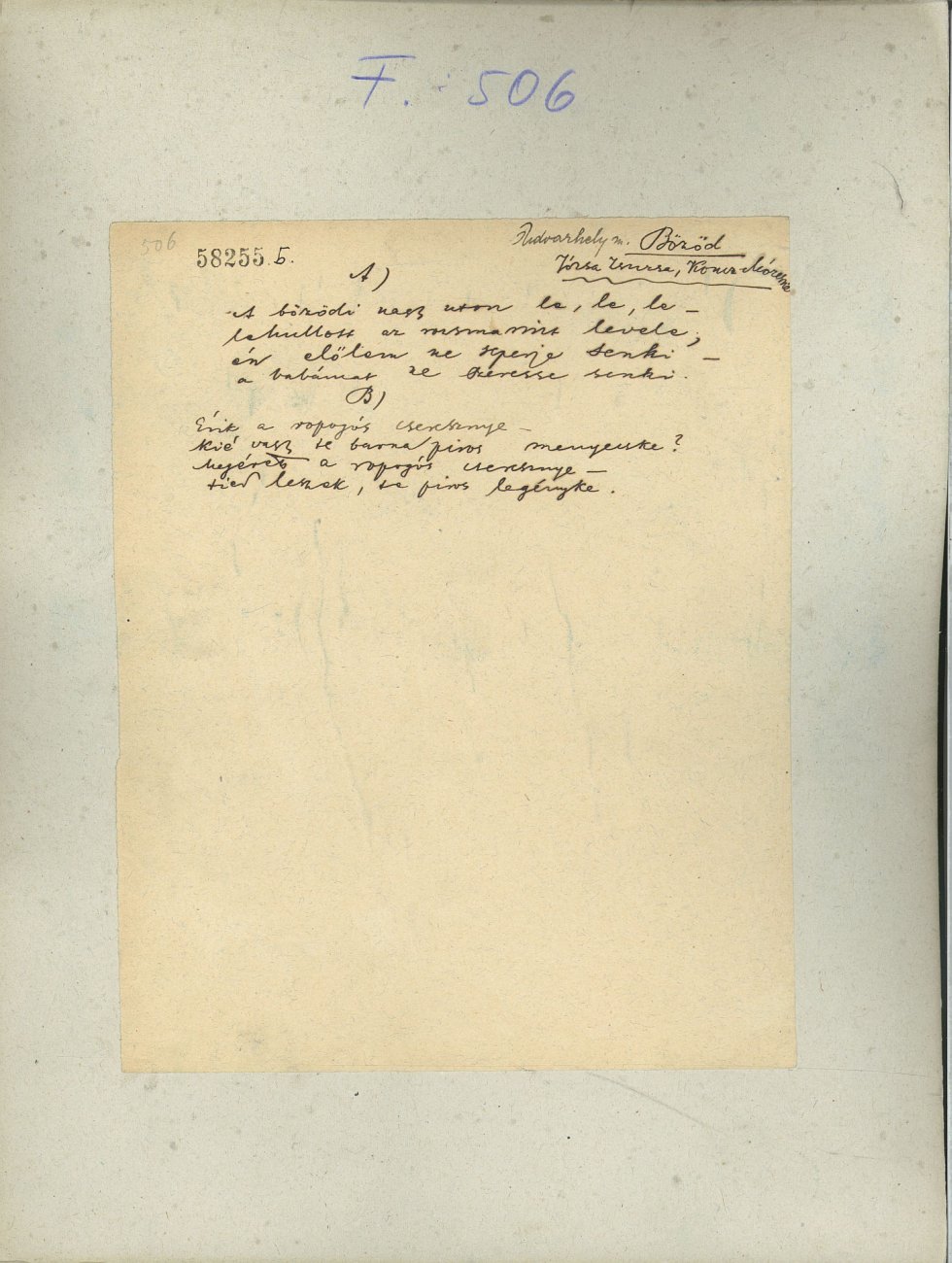 Place of origin: Bözöd (Udvarhely)