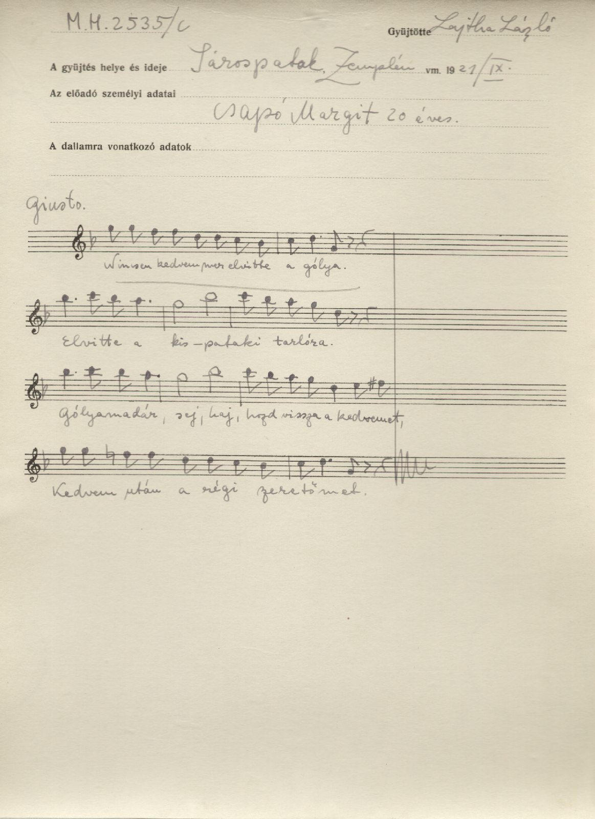 Informant: Csapó Margit (20)