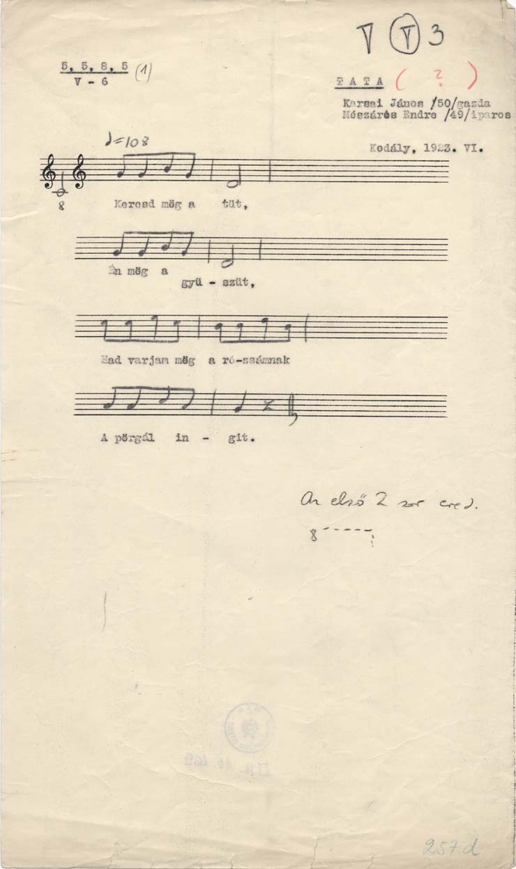 Informant: Karsai János (50) gazda, Mészáros Endre (49) iparos