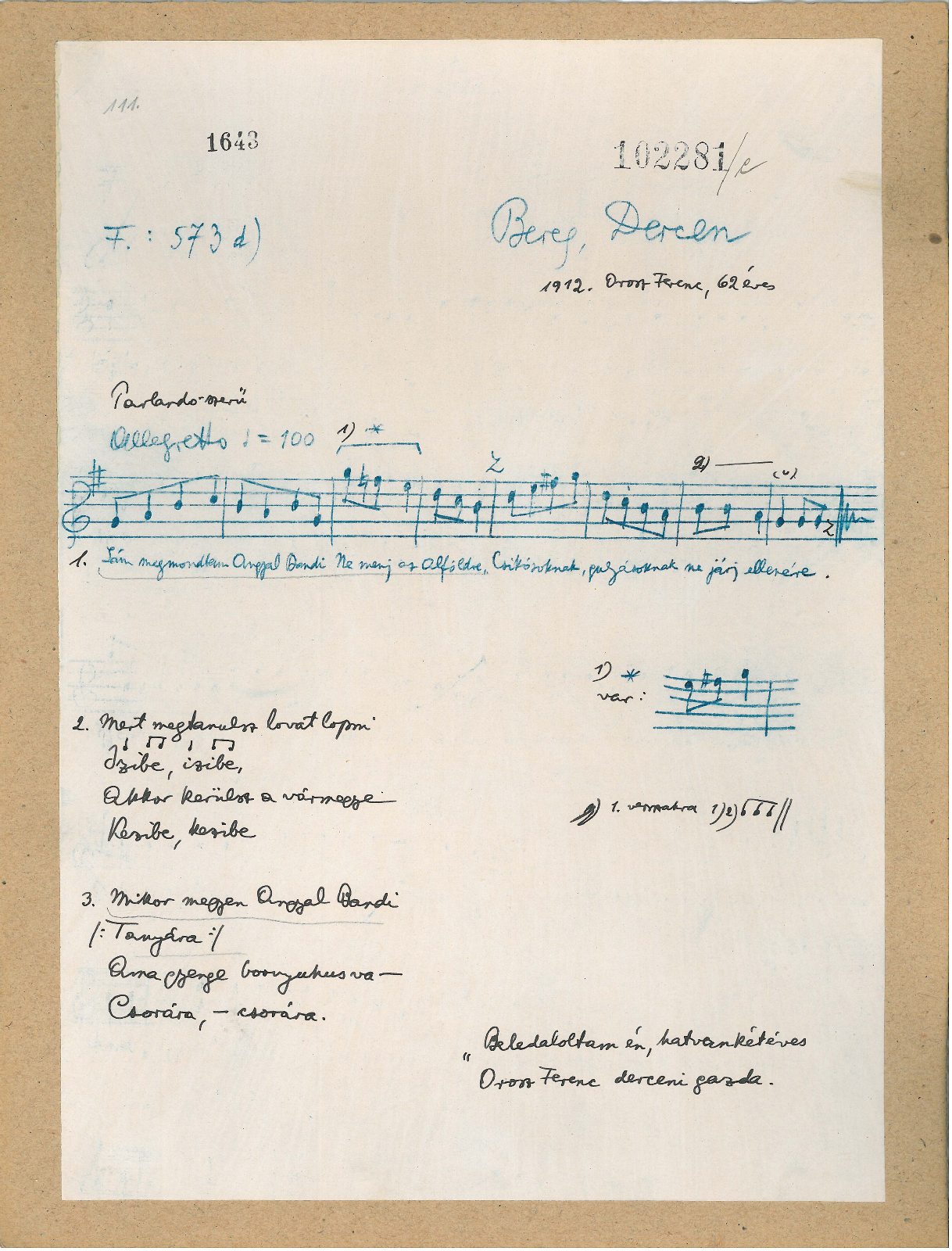 Informant: Orosz Ferenc (62)