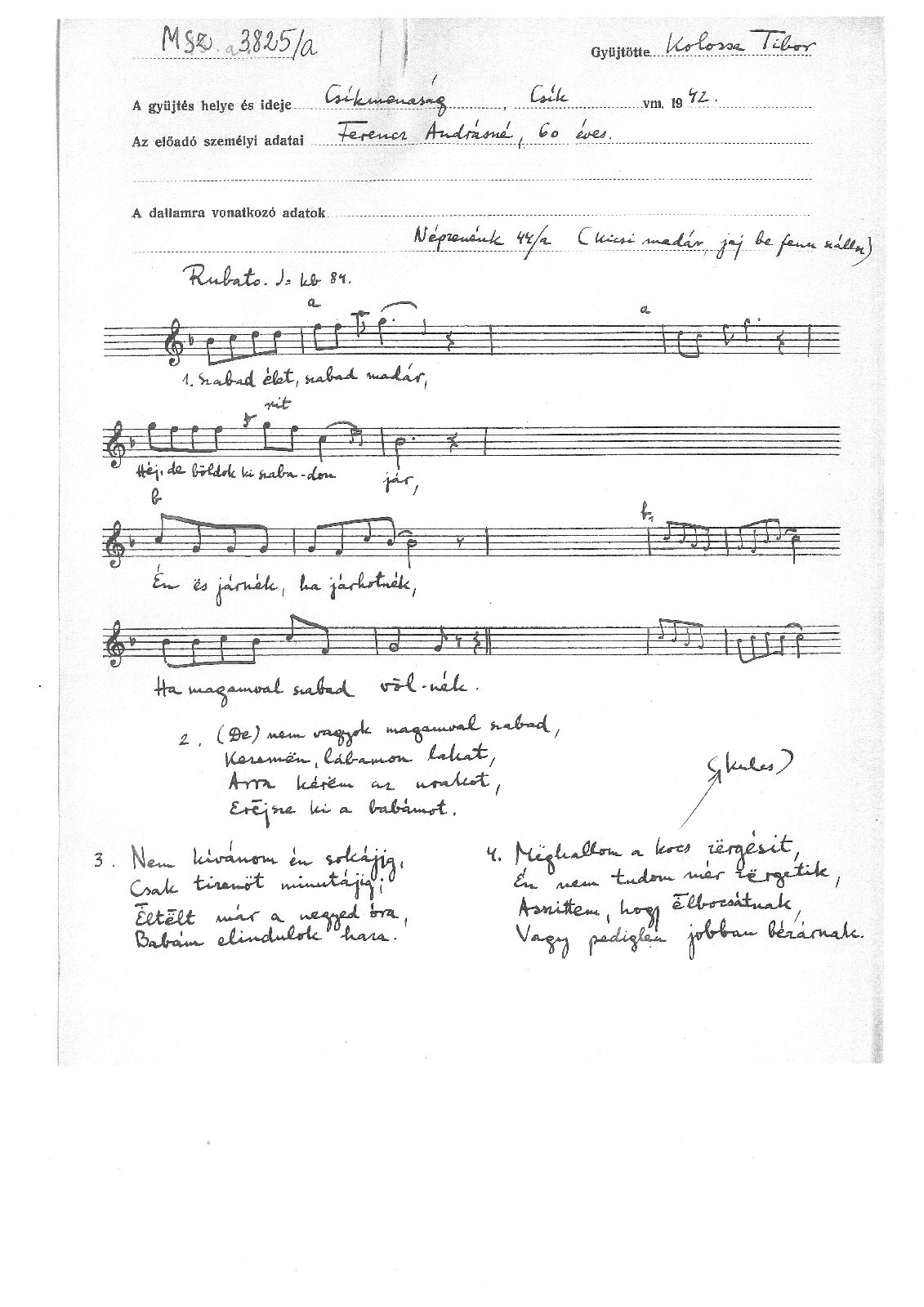 Informant: Balla Józsefné Gyurics Veron (72)