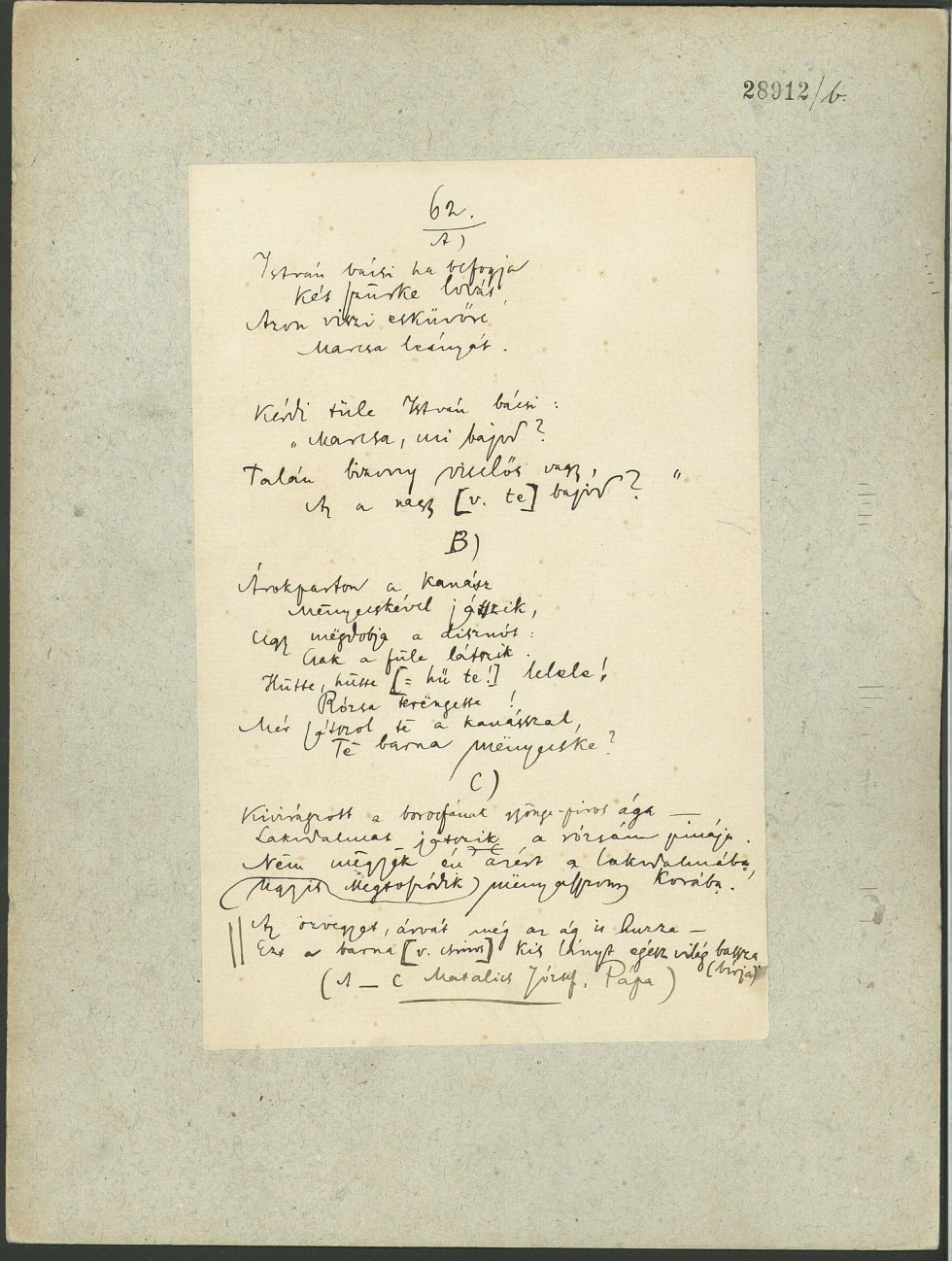 Informant: Matalics József iparos lad
