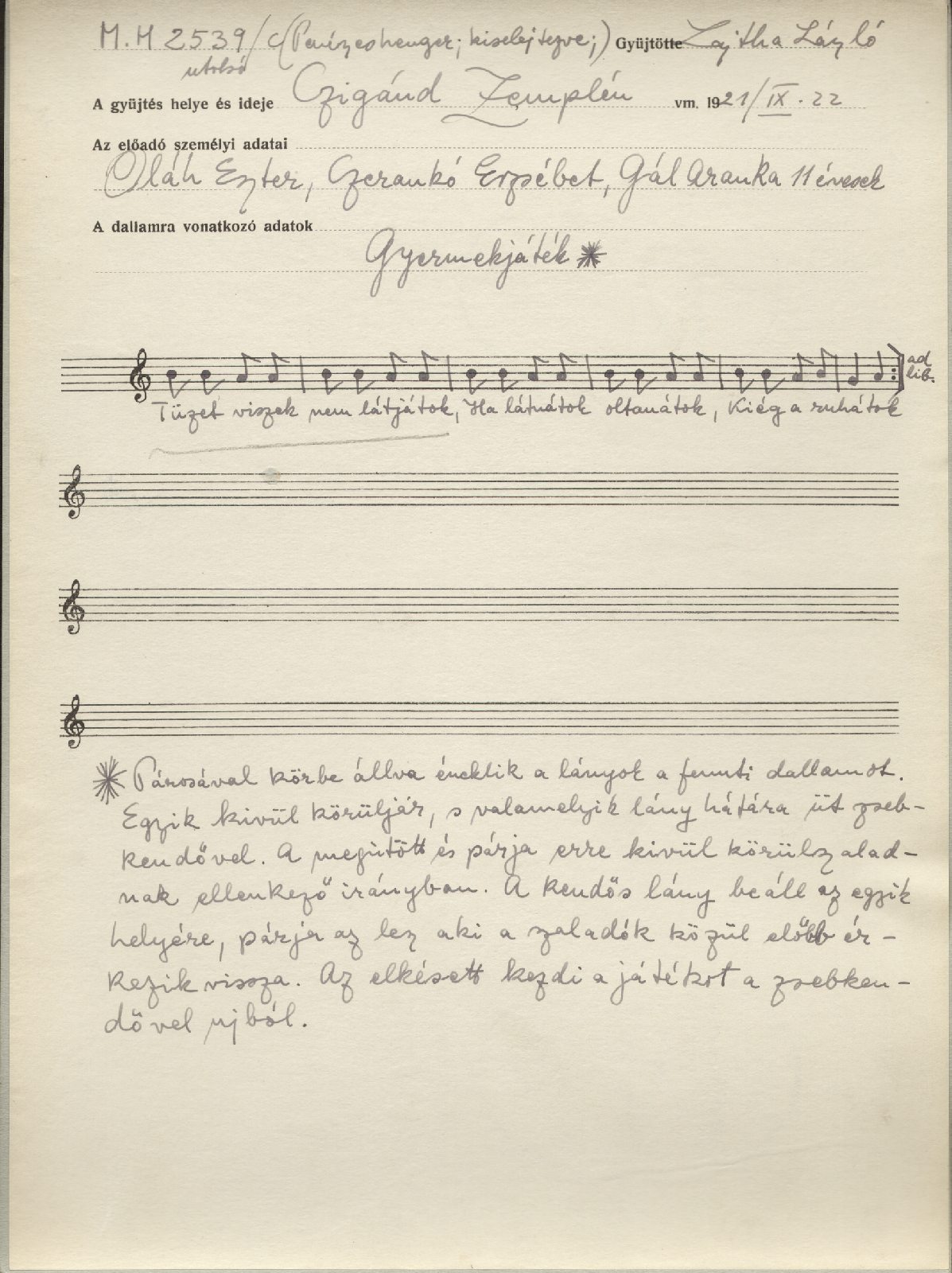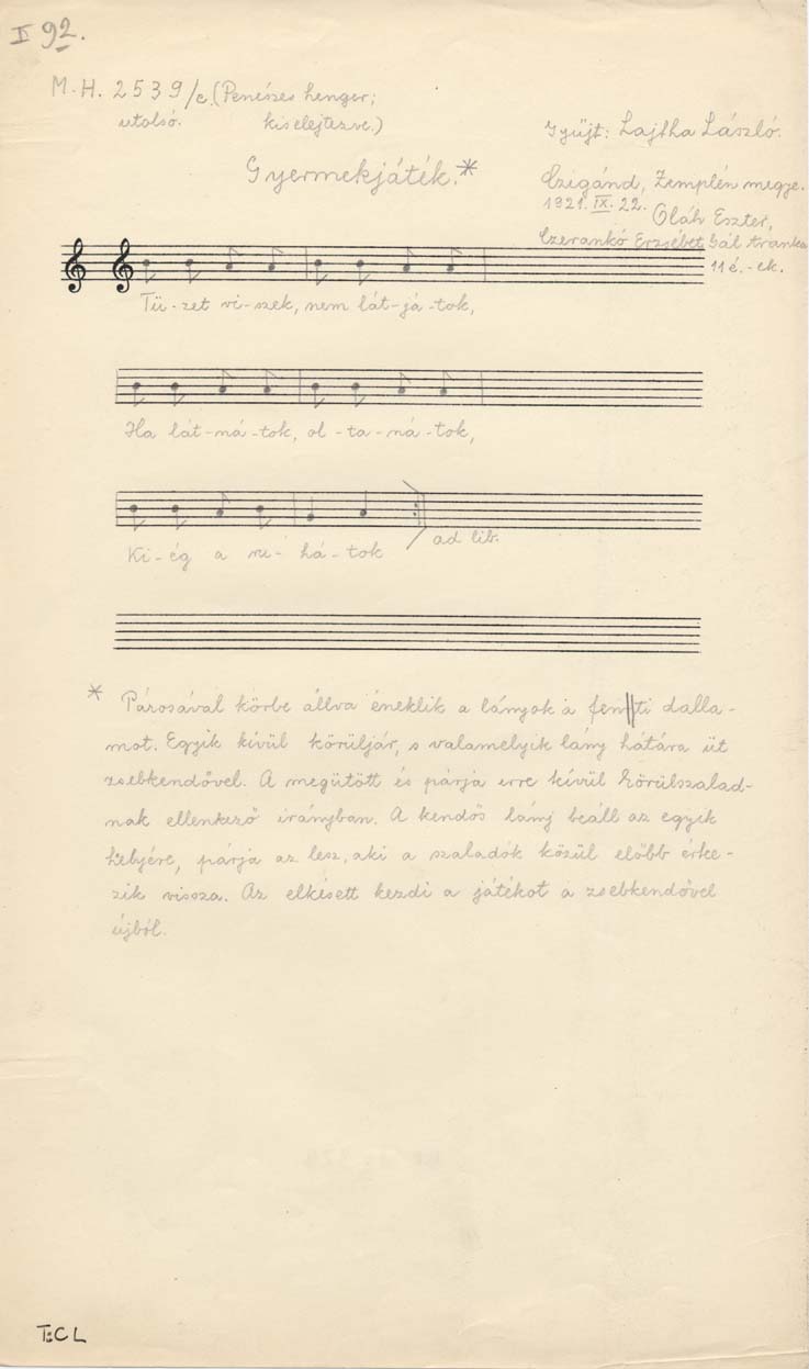 Informant: Oláh Eszter (11), Czerankó Erzsébet (11), Gál Aranka (11)