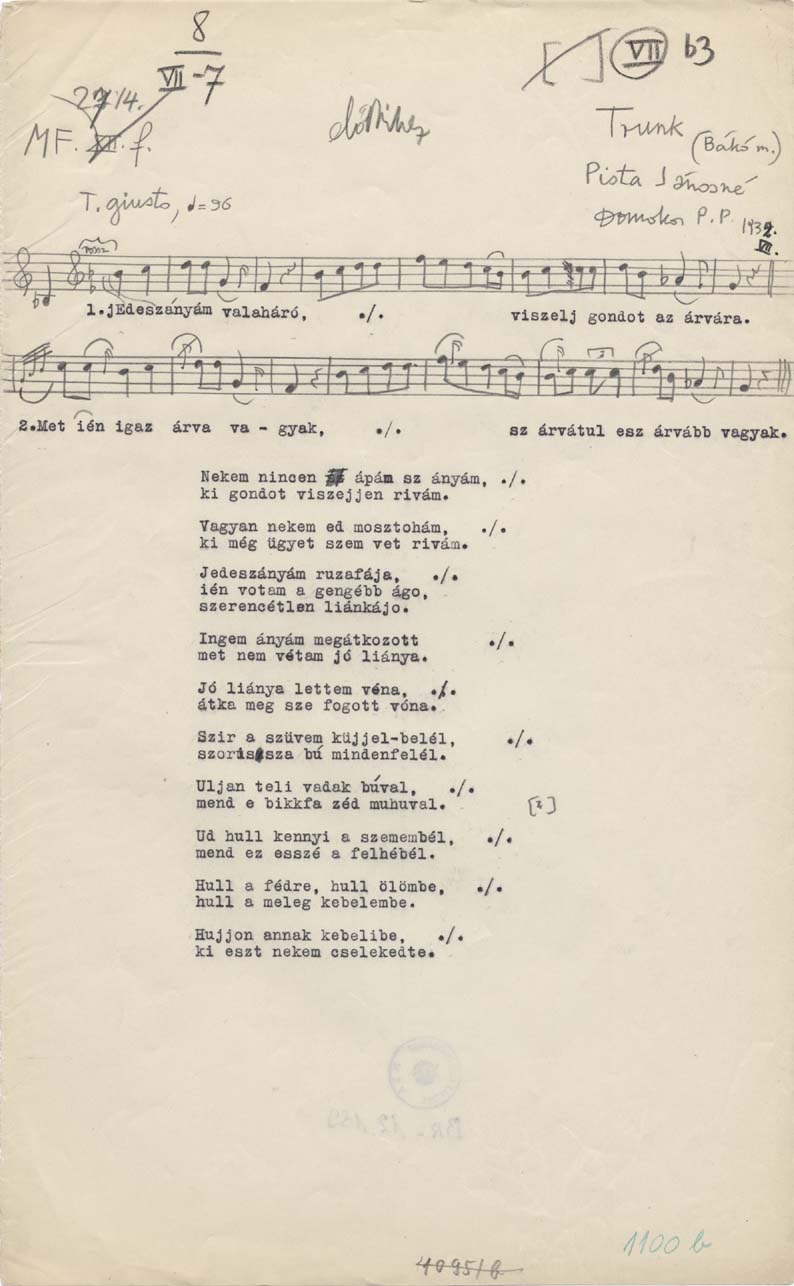 Bartók-rendi szám: C 1100b