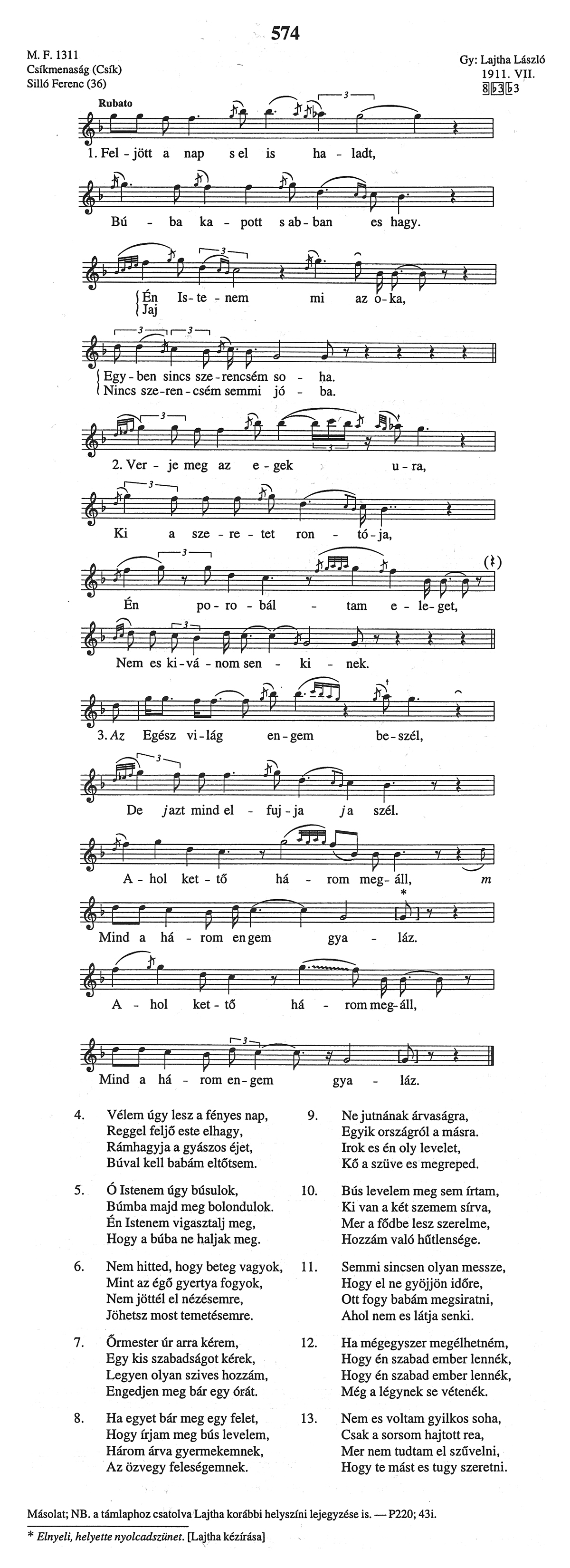 Bartók-rendi szám: A 574