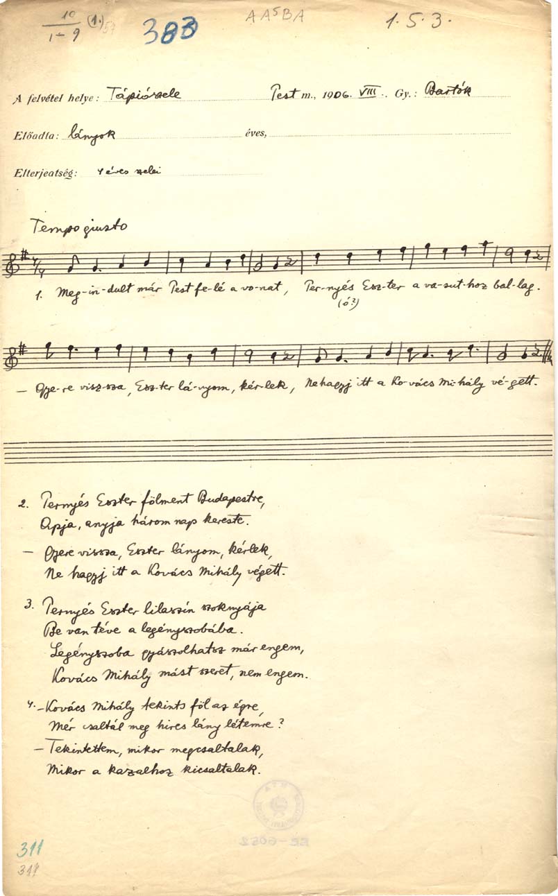 Bartók-rendi szám: B 311