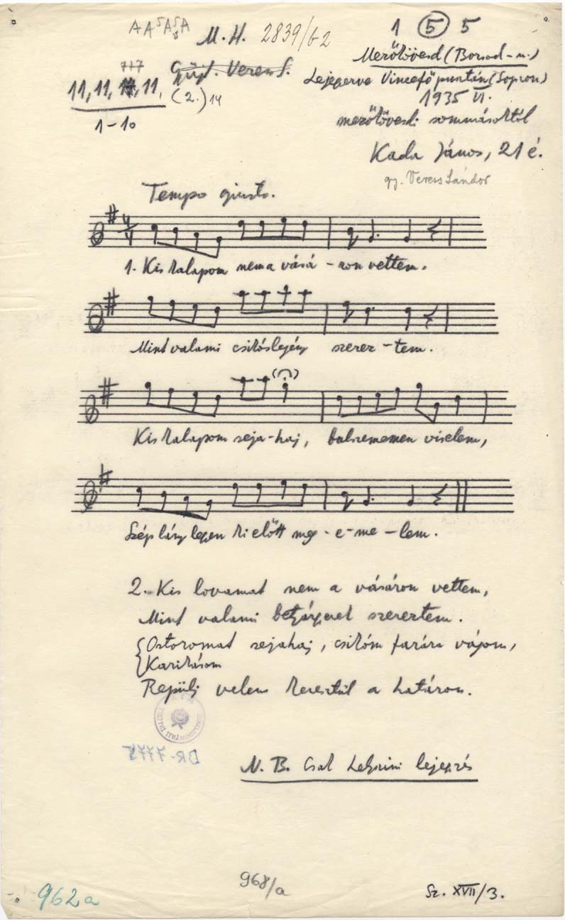 Bartók-rendi szám: B 962a