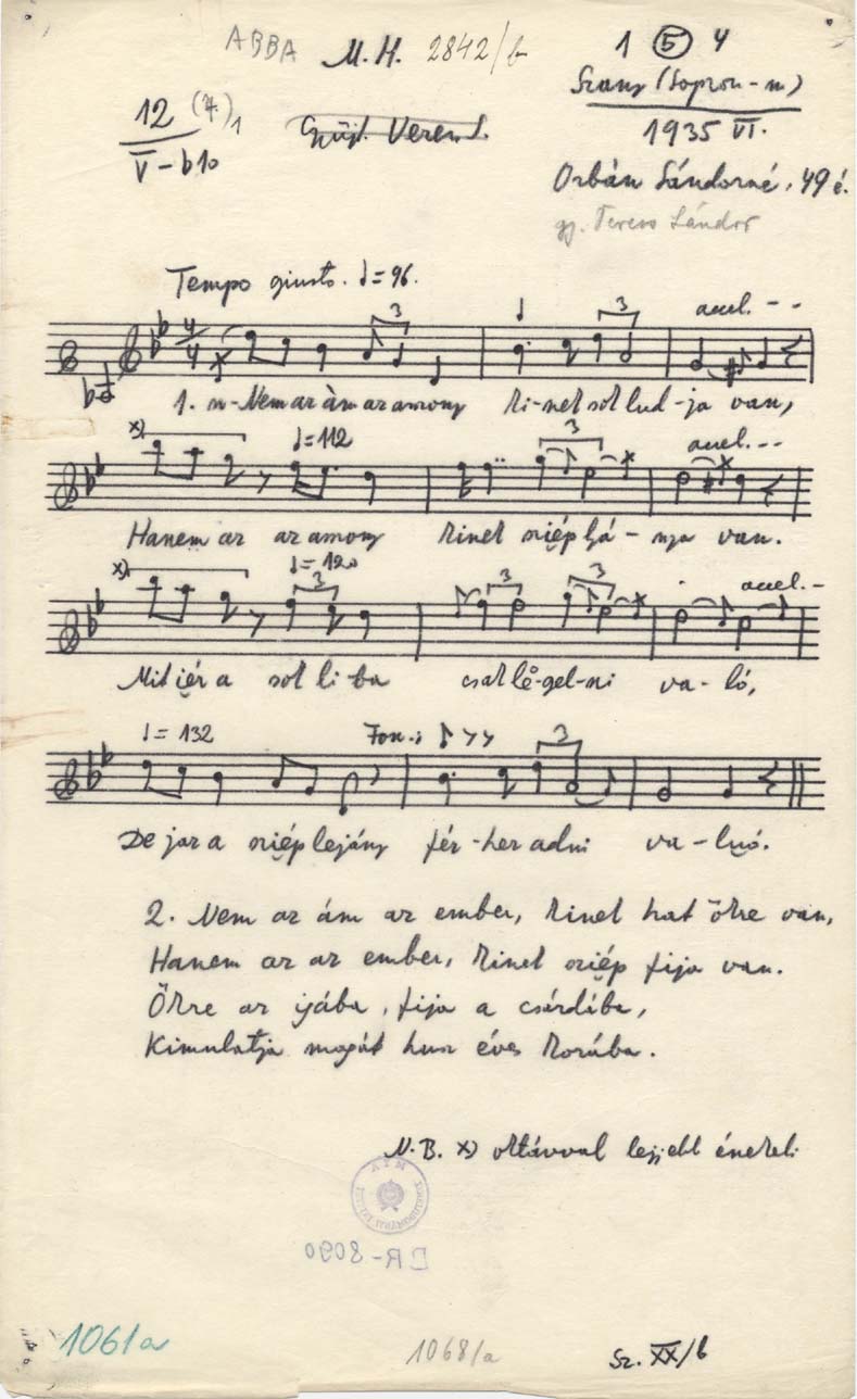 Bartók-rendi szám: B 1061a