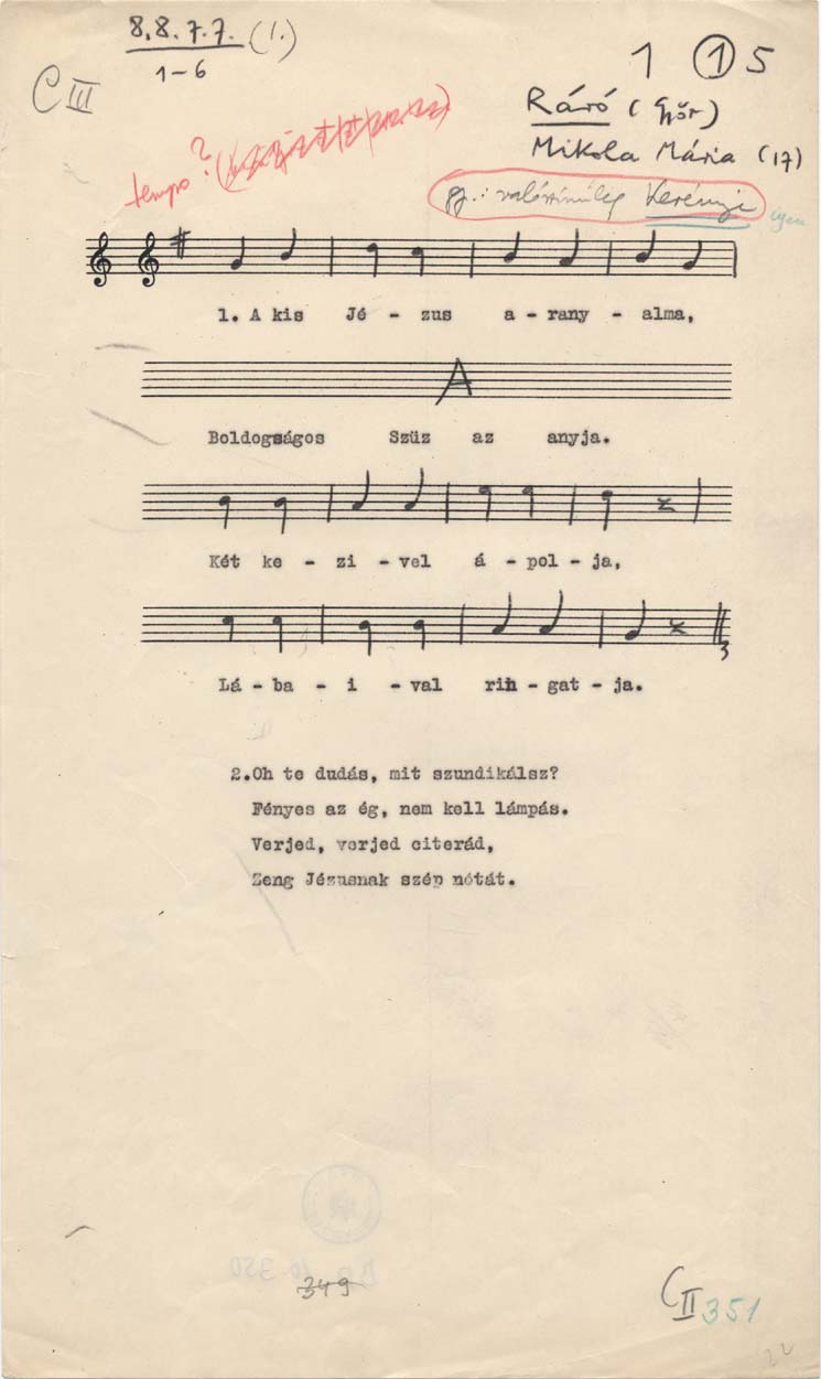 Adatközlő: Mikola Mária (17)