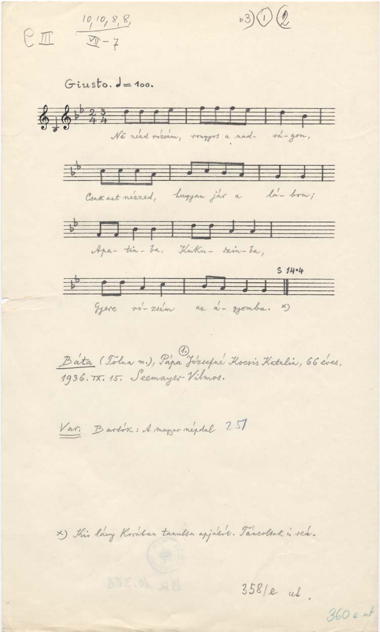 Bartók-rendi szám: C 360e
