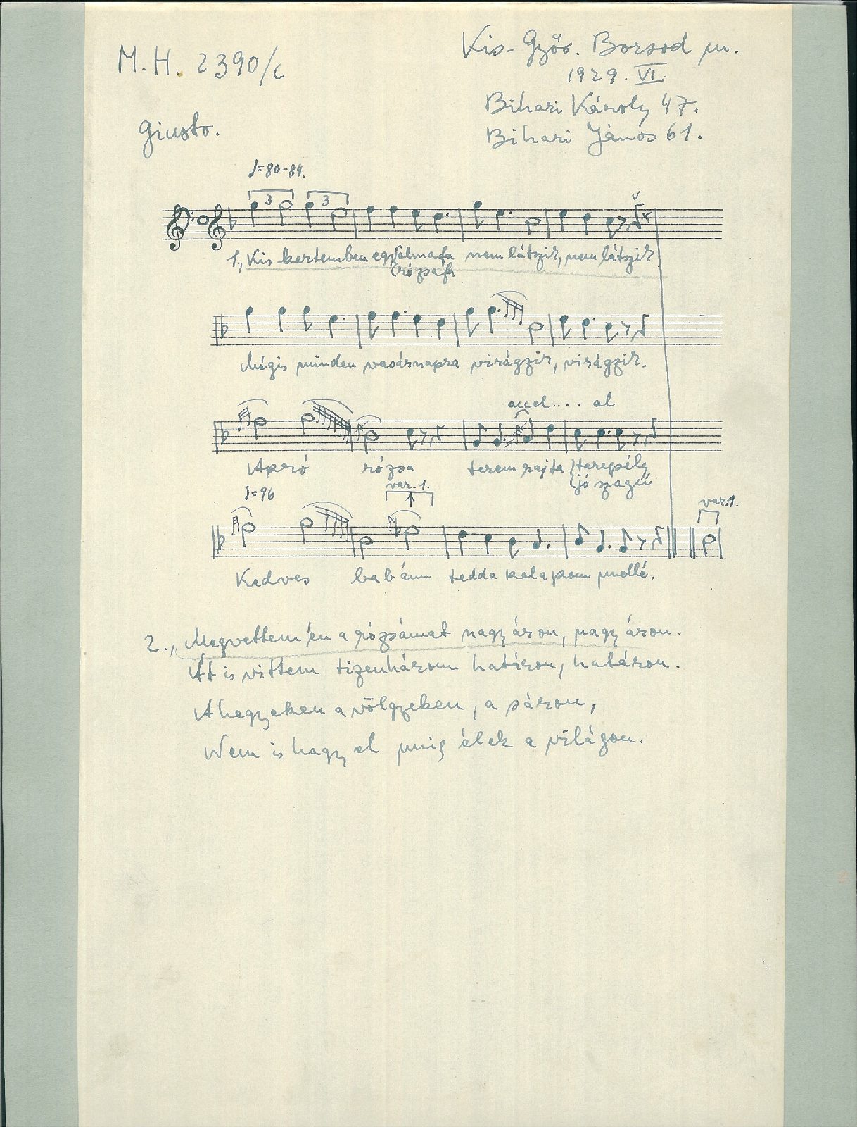 Adatközlő: Bihari Károly (47), Bihari János (61)